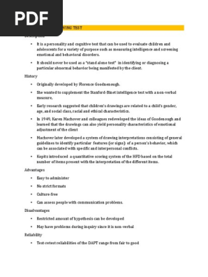 Draw A Person Test Pdf Draw A Person Test Interpretative Manual Draw A Person Test Karen Machover I History The First Formal Development Of A Course Hero